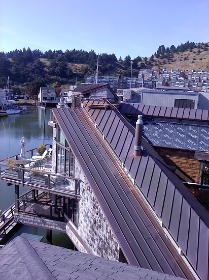 Copper roof in progress, 60 foot roof run, 20 foot panels with staggered seams